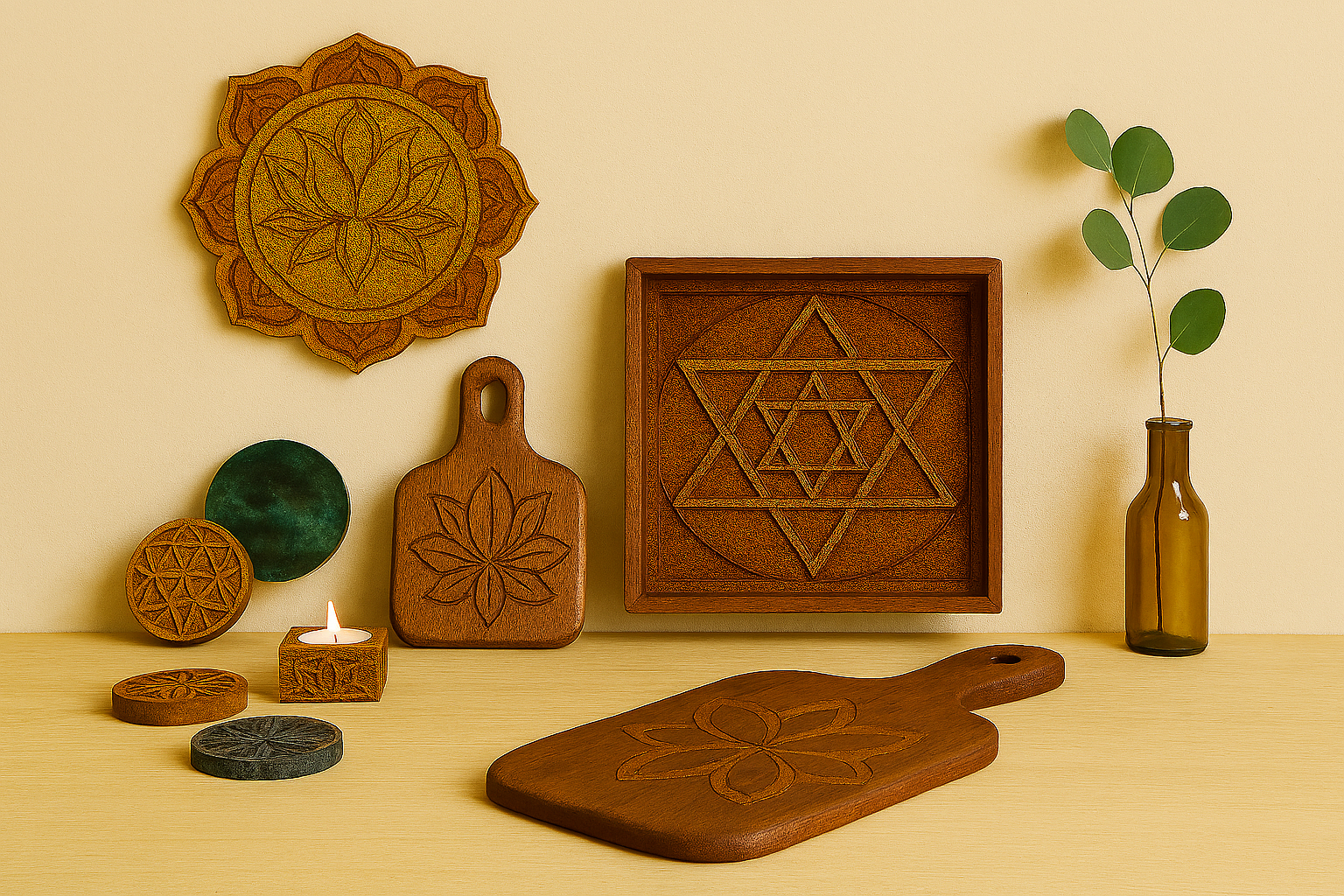 This wall art is a recreation of the auspicious Yantra using multi-layered laser cut designs. A total of 7 layers are assembled together to give a yantra a unique 3D look. The artwork is then framed on a 12x12in wooden frame ready to hang on a wall.