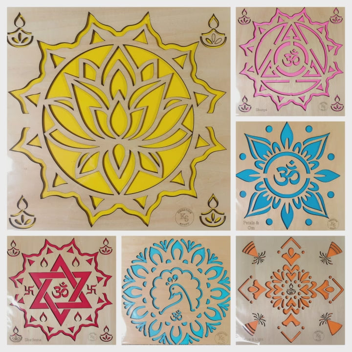 This wall art is a recreation of the auspicious Yantra using multi-layered laser cut designs. A total of 7 layers are assembled together to give a yantra a unique 3D look. The artwork is then framed on a 12x12in wooden frame ready to hang on a wall.